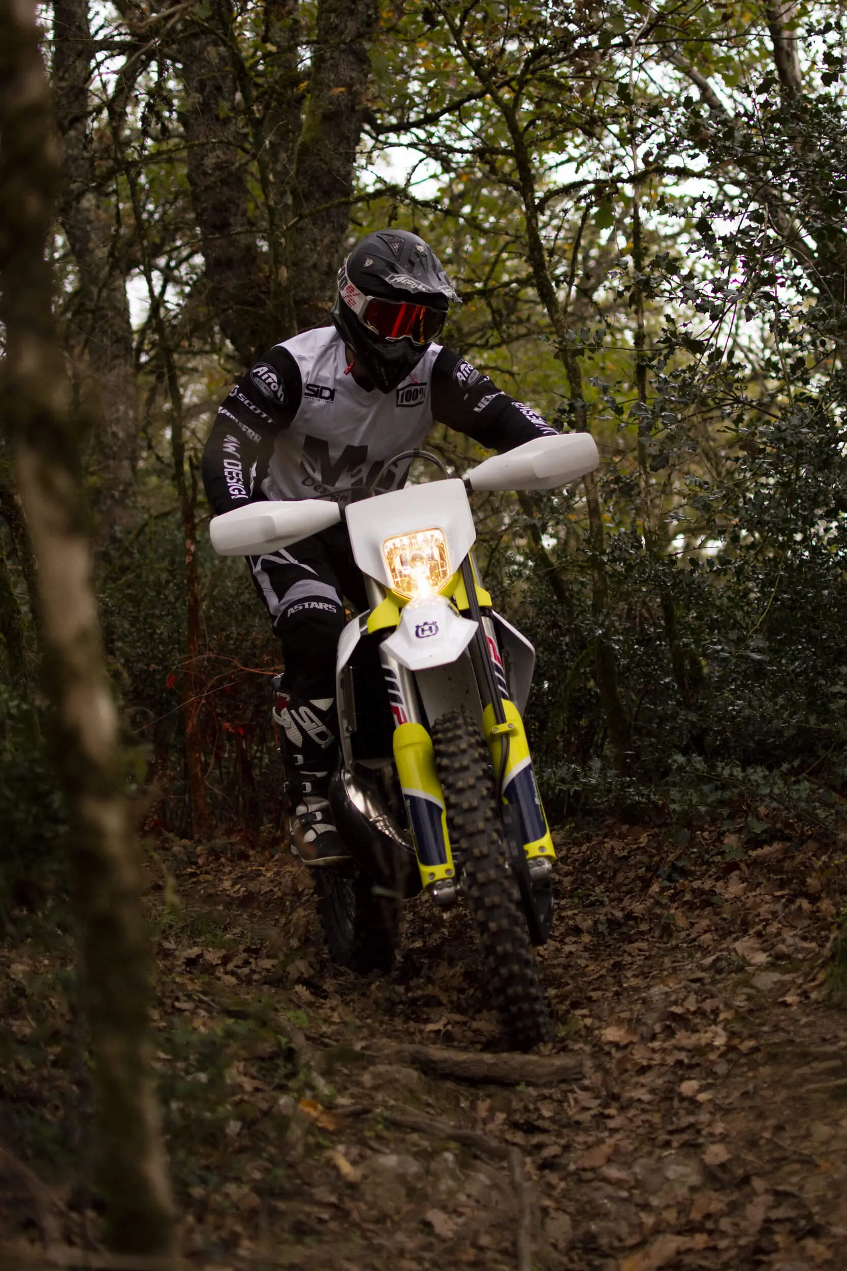 Dans les collines du Sidobre, cette enduro est mise à l'épreuve et s'en sort facilement grâce à sa cartographie moteur et à son cadre rigide en acier. De quoi en faire une des reines de la discipline. (Projet)